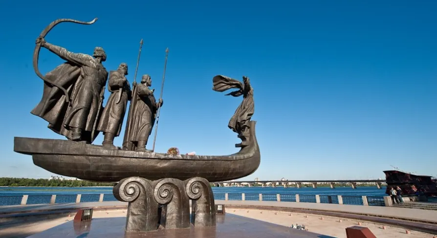 The city’s hallmark — the Monument to the Founders of Kyiv — stands on a boat cutting through the waves. It features the figures of the brothers Kyi, Shchek, and Khoryv and their sister Lybid. These four heroes are mentioned by the chronicler Nestor in the «Tale of Bygone Years» — as the founders of the capital city of Kyiv.